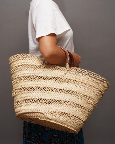 (モロッコ) マルシェバスケット ブラウンレザーハンドル (LL)
