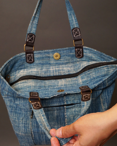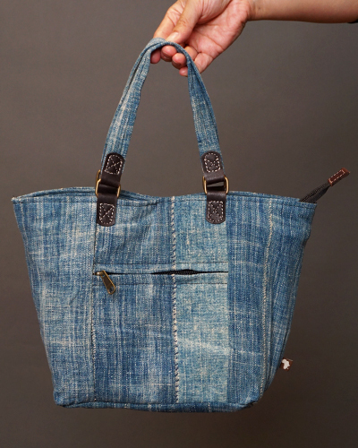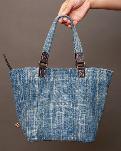 アフリカ、マリ共和国の藍染め布を使い、タイで丁寧に縫製したバッグです。