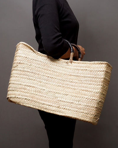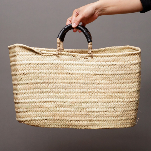 (モロッコ) メディナバスケット ブラックレザーハンドル (L)