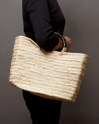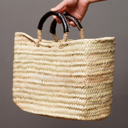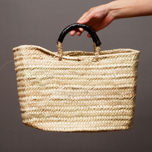 (モロッコ) メディナバスケット ブラックレザーハンドル (S)