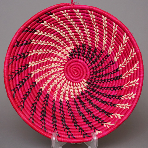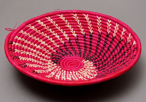網目がとてもきれいな水草とラフィア椰子の葉で作ったバスケットです。