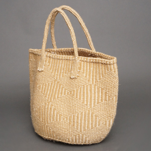 (ケニア) サイザルバッグ アクリル柄編み 10インチ (ホワイトXベージュ) No.1