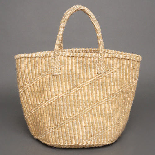 (ケニア) サイザルバッグ アクリル柄編み 10インチ (ホワイトXベージュ) No.3