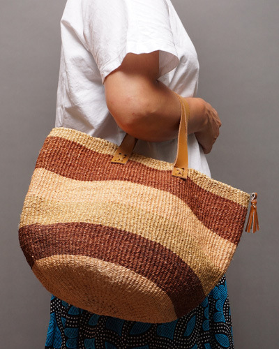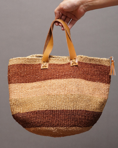 ケニア ボーダーカラー サイザルバッグ 8インチ No,2