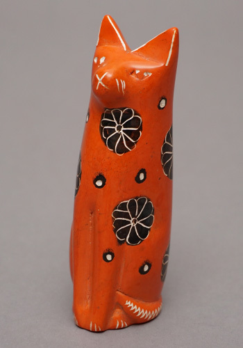柔らかく加工しやすい石を削って作られた猫の置物です。