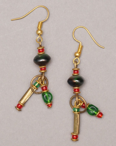 (ケニア)  真鍮&クリスマスカラービーズ ピアス No.900-25
